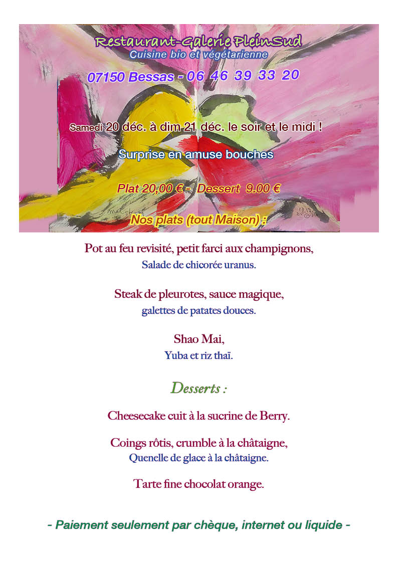 Bonjour,Nous serons ouverts les 25, 26, 27, 28 décembre midi et soir. Le menu affiche est pour ce week-end. Nous enverrons le menu de Noël la semaine prochaine.Bonne journée !