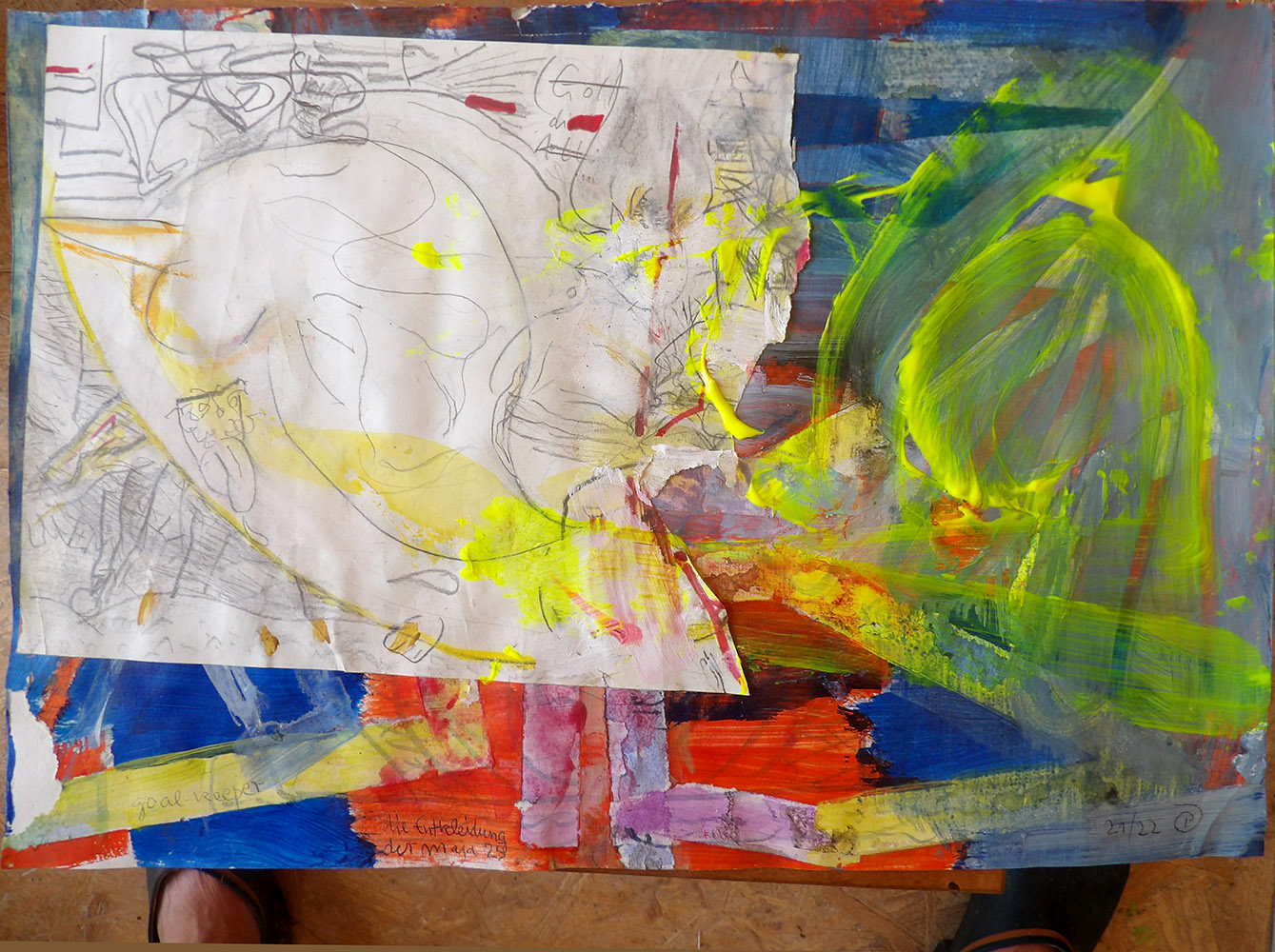 Für Liebhaber und Experten: Das allerletzte Jugend- („das Ende der Minotauromachie“) und das aktuelle Alterswerk „DJ Picksolo“ folgen 2024/25 kurz aufeinander und fallen beide aus derZeit. Metamorphosen über Jugend und Alter kommen zusammen und ihre Verwandtschaft ist unübersehbar. Aux passionnés et aux experts : La toute dernière œuvre de jeunesse (« La Fin de la Minotauromachie ») et l'œuvre tardive actuelle « DJ Picksolo » se succèdent en 2024/25 et sont toutes deux dépassées. Les métamorphoses sur la jeunesse et sur la vieillesse se rejoignent, et leur lien est indéniable.