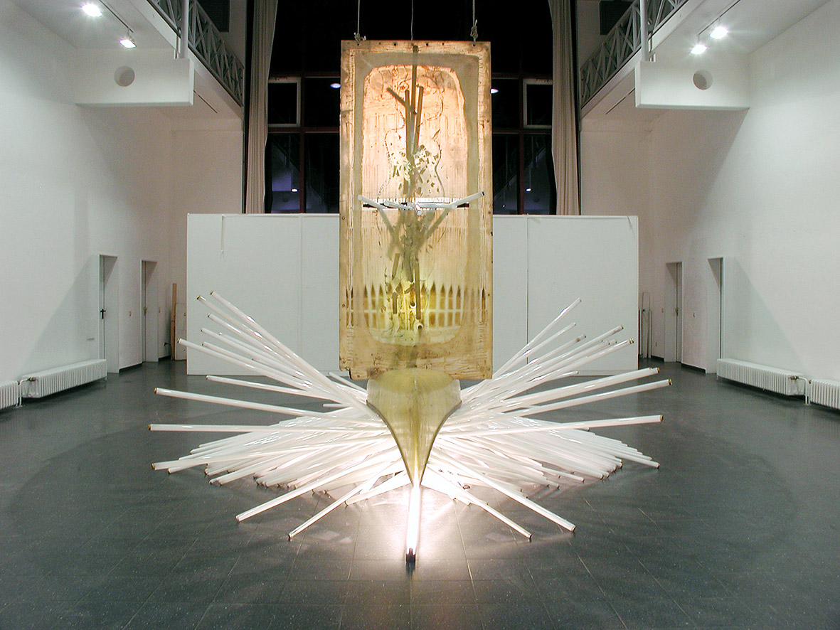 Every thought of freedom is an artistic event, an indefinite longing for a form that suggests the ideal of life and the world. Beyond all market and power factors, the gallery is a transfor-mer that converts mental streams into visual vectors. This means that a picture or object on the wall or a sculpture outside is also food, a food and luxury item like the dish on the table.